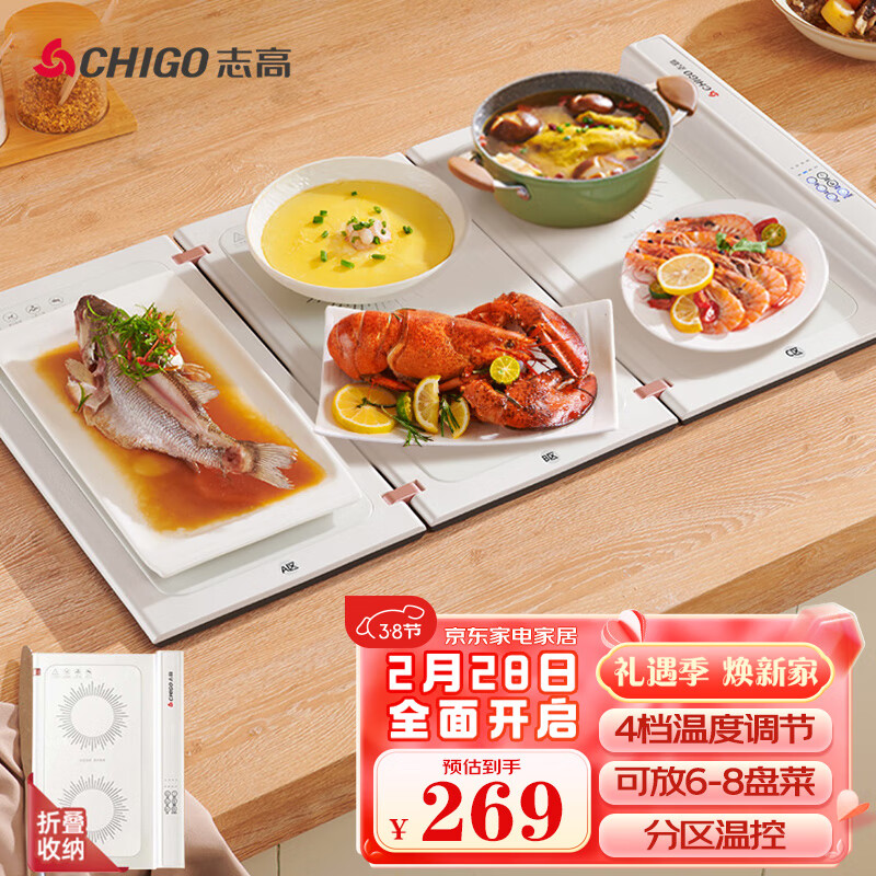 志高(CHIGO)暖菜板 饭菜保温板热菜板 加热桌垫菜板 智能折叠 分区控温暖菜板 72*40CM方形 ZG-88价格:269.00元!