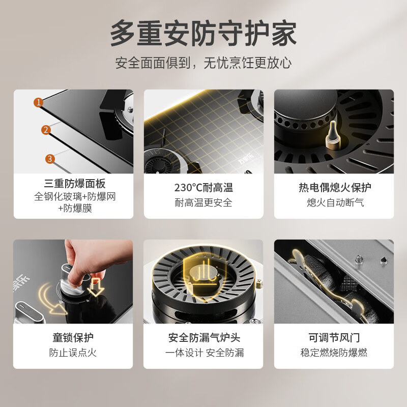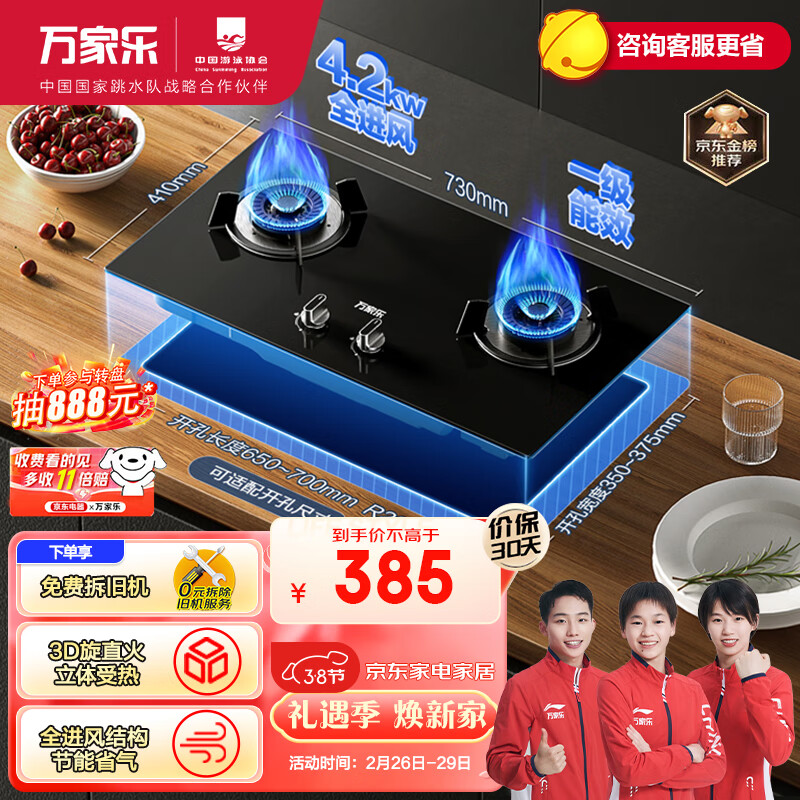 万家乐燃气灶 嵌入式台嵌两用 4.2kW大火力一级能效 家用双灶灶具JZT-KA031B天然气价格:535.00元!