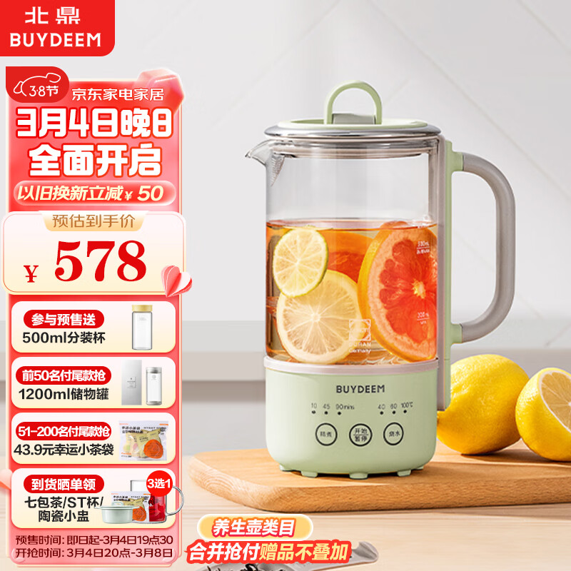北鼎(Buydeem)养生壶电水壶迷你养生杯办公室便携一体式保温煮茶器 K32浅杉绿(不含萃取篮)价格:598.00元!
