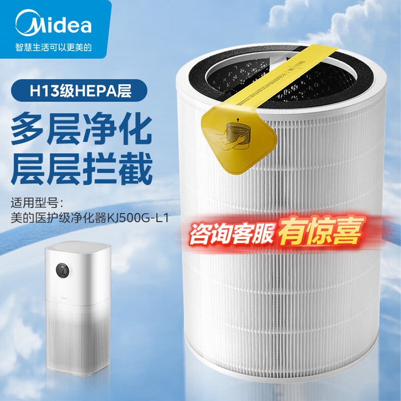 美的(Midea)空气净化器滤芯 分解甲醛 除异味除颗粒物净化器L1原装滤网FC-50F1【配件】价格:399.00元!