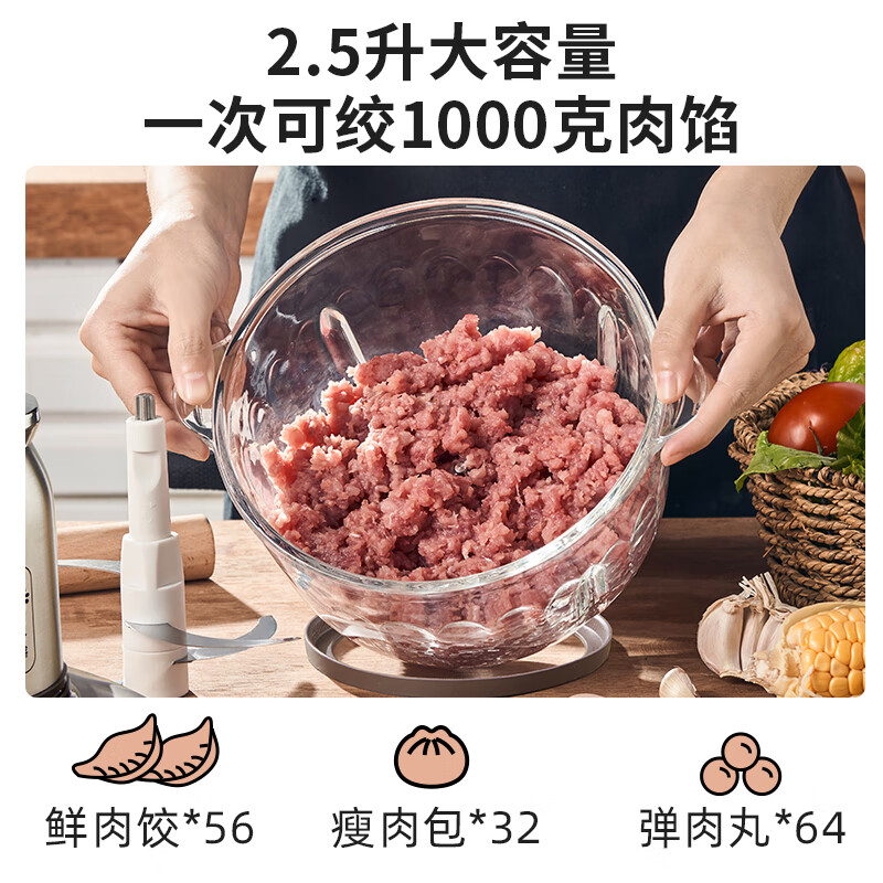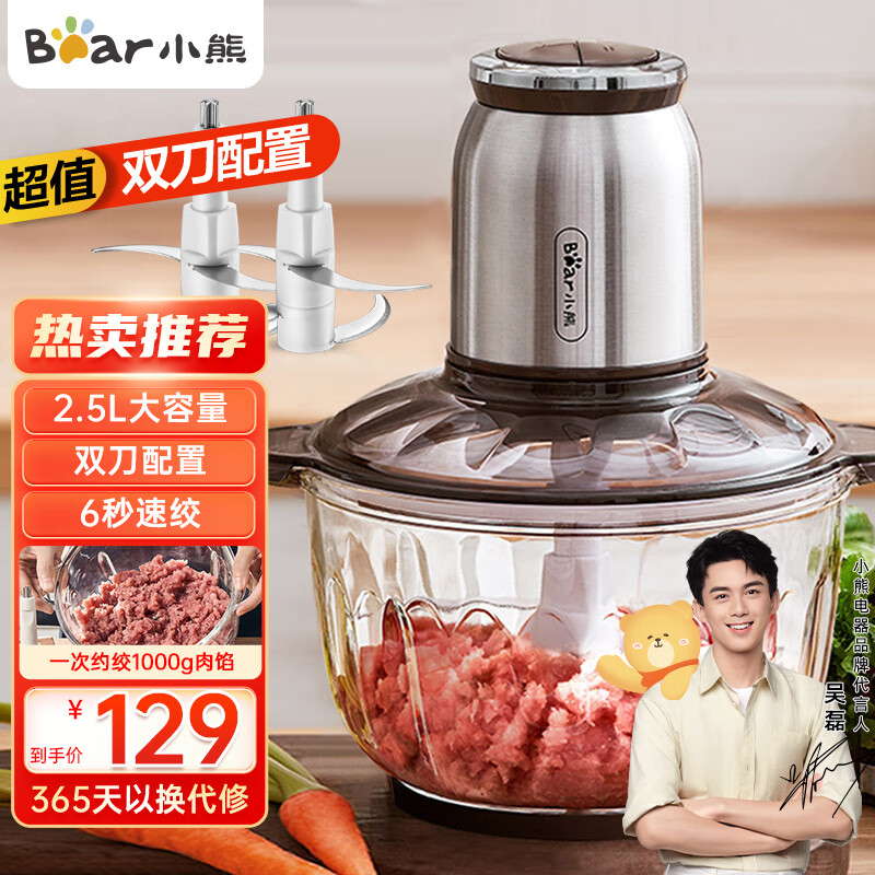 小熊(Bear)绞肉机家用 绞馅机 碎肉机 电动多功能料理搅拌打肉饺子肉馅蒜蓉机不锈钢 搅肉机QSJ-C04V3 2.5L价格:129.00元!