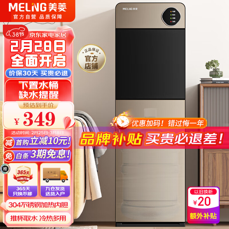 美菱(MeiLing)饮水机家用立式冷热型快速加热下置水桶制冷饮水器MY-L151-B价格:359.00元!