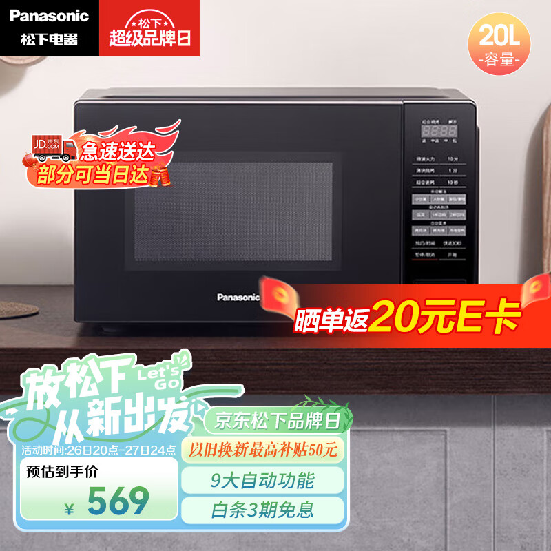 松下(Panasonic)NN-GT30PB 20L家用容量微波炉 微烤炸一体机 童锁模式更安心 支持以旧换新价格:569.00元!