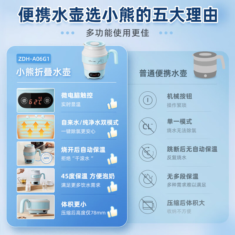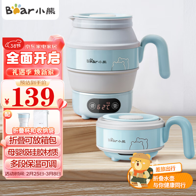 小熊(Bear)便携式烧水壶电水壶折叠水壶 烧水杯旅行家用恒温水壶养生冲奶保温热水壶电热水壶ZDH-A06G1价格:139.00元!