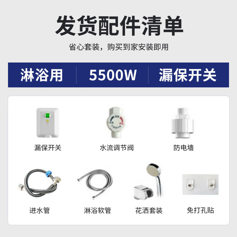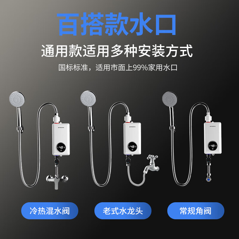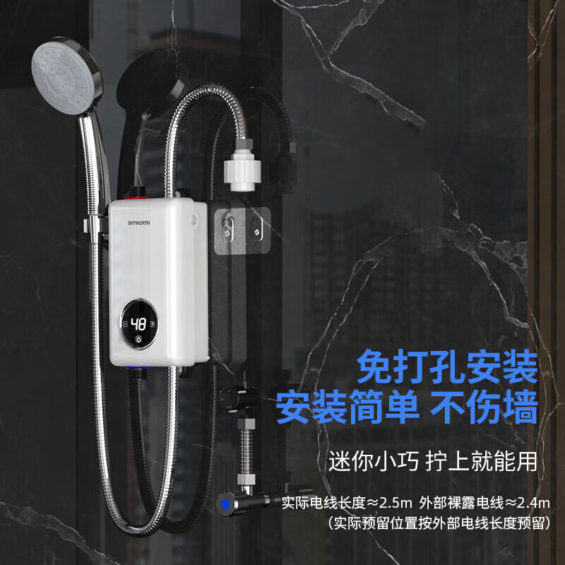 创维(Skyworth)即热式电热水器【升级2.5M电线 防漏电】 免打孔节能变频恒温淋浴机即开即热D868静谧白5500w价格:339.00元!