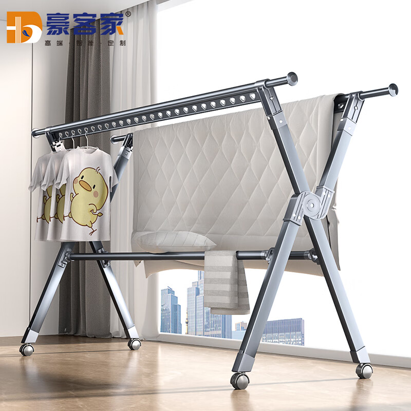 豪客家(HKG)晾衣架落地铝合金折叠伸缩室内阳台家用晒衣晒被子神器晾衣杆价格:308.00元!