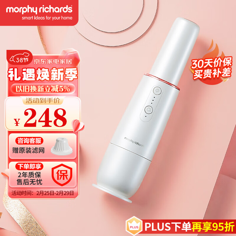 摩飞电器(Morphyrichards)吸尘器手持家用车载吸尘器宠物家庭适用MR3936 椰奶白价格:248.00元!