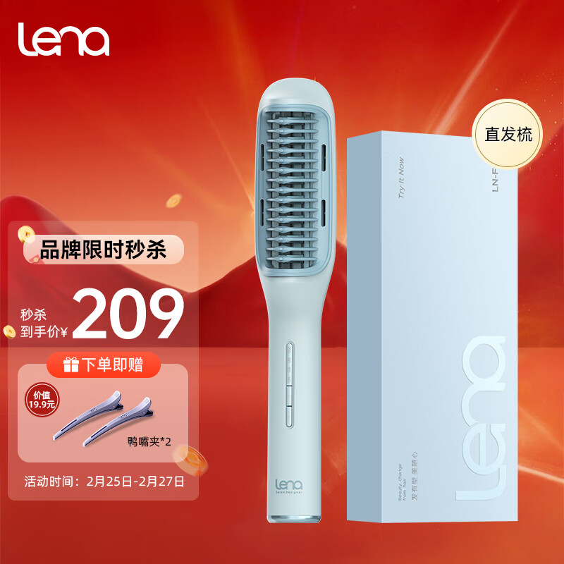 lena直发梳负离子不伤发蓬松直发神器迷你便携小型卷发棒烫发内扣夹板两用家用防烫美发造型梳电梳子F6价格:232.22元!