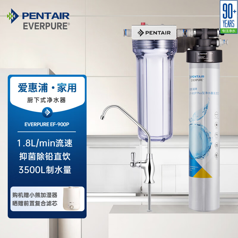爱惠浦(Everpure) 家用矿物质厨下净水器 大流量0废水直饮 1.8L/分钟3500L处理量 EF-900P Plus价格:1099.00元!