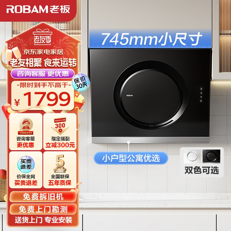 老板(Robam)抽油烟机小户型油烟机家用侧吸小尺寸吸油烟机免拆洗易洁排油烟机以旧换新21A5H价格:1669.00元!
