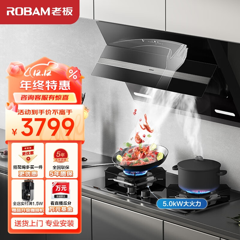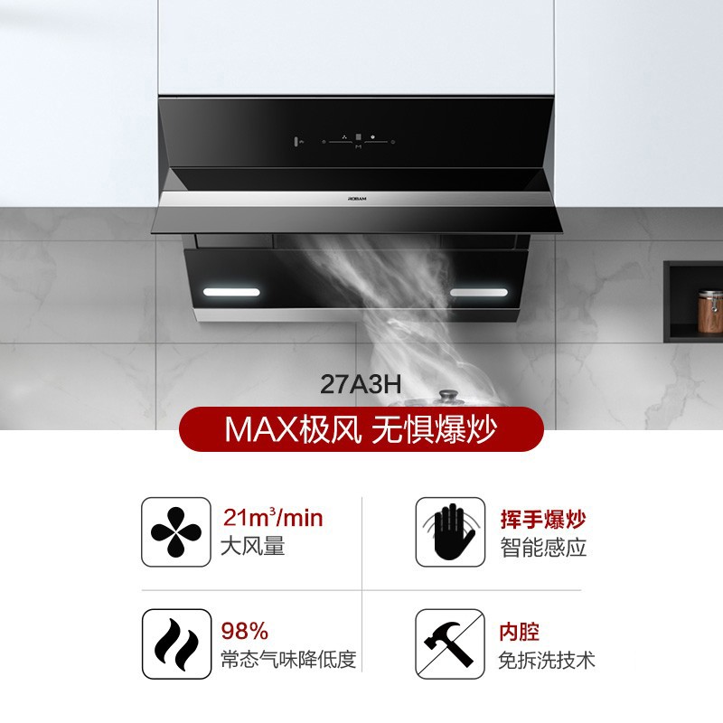 老板(Robam)抽油烟机烟灶套装免拆洗侧吸油烟机21风量燃气灶家用吸油烟机灶具27A3H+57B2DY价格:3799.00元!