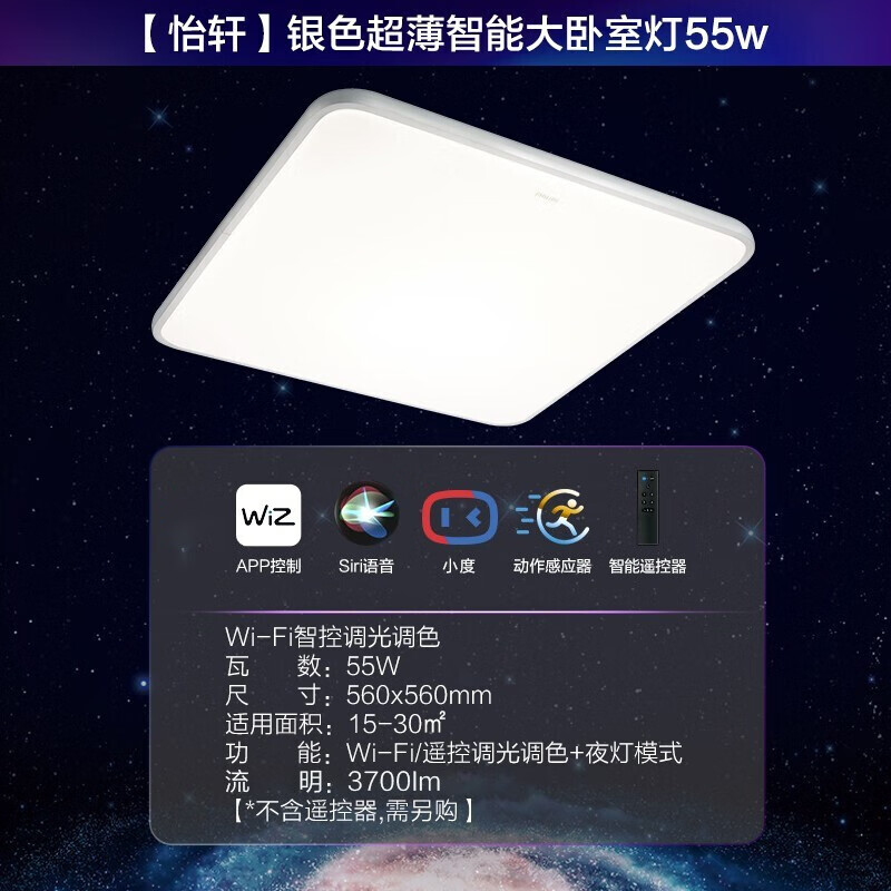 飞利浦客厅灯LED吸顶灯卧室灯 怡轩智能WiFi 版 55W银色9290031825价格:999.00元!