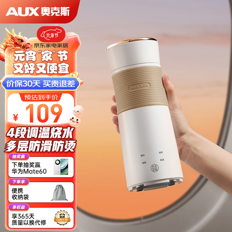 奥克斯(AUX)便携式家用旅行电热水壶随行冲奶泡茶办公室养生杯恒温热水壶电水杯HX-DR21价格:109.00元!