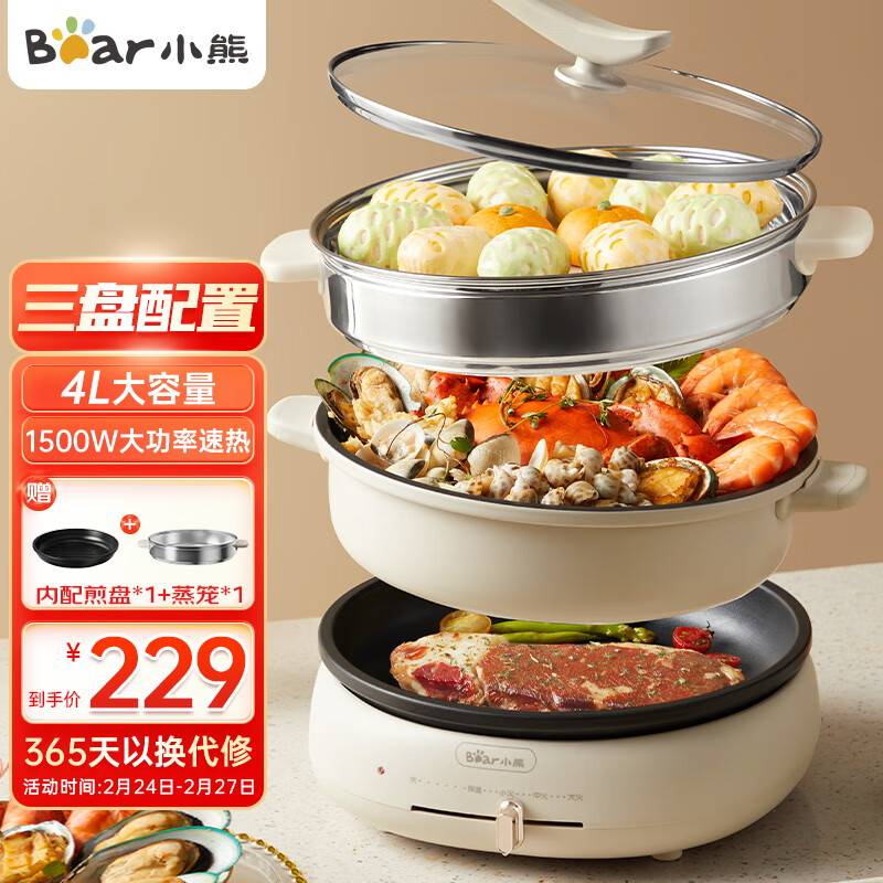 小熊(Bear)火锅专用锅 电火锅 升级防烫把手 家用电锅分体多功能锅电煮锅涮肉火锅锅具 DHG-C40W2 4L大容量价格:229.00元!