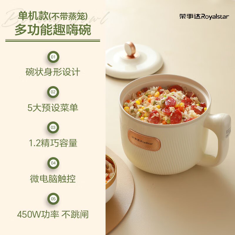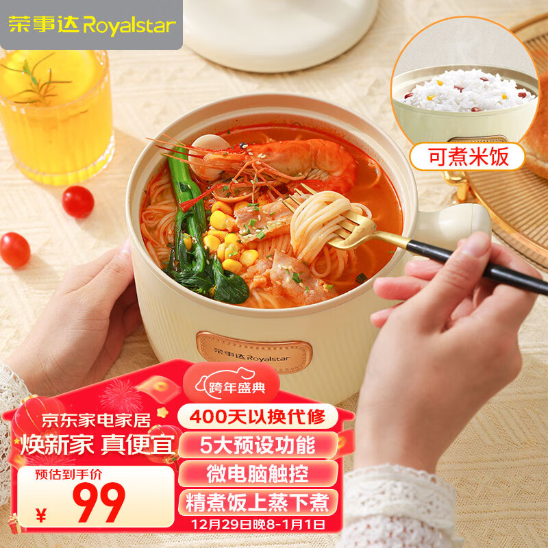 荣事达(Royalstar)电煮锅多功能迷你电热锅家用电蒸锅学生宿舍煮面锅小电锅一体电火锅 1.2L智能款电煮锅DZG12M价格:99.00元!
