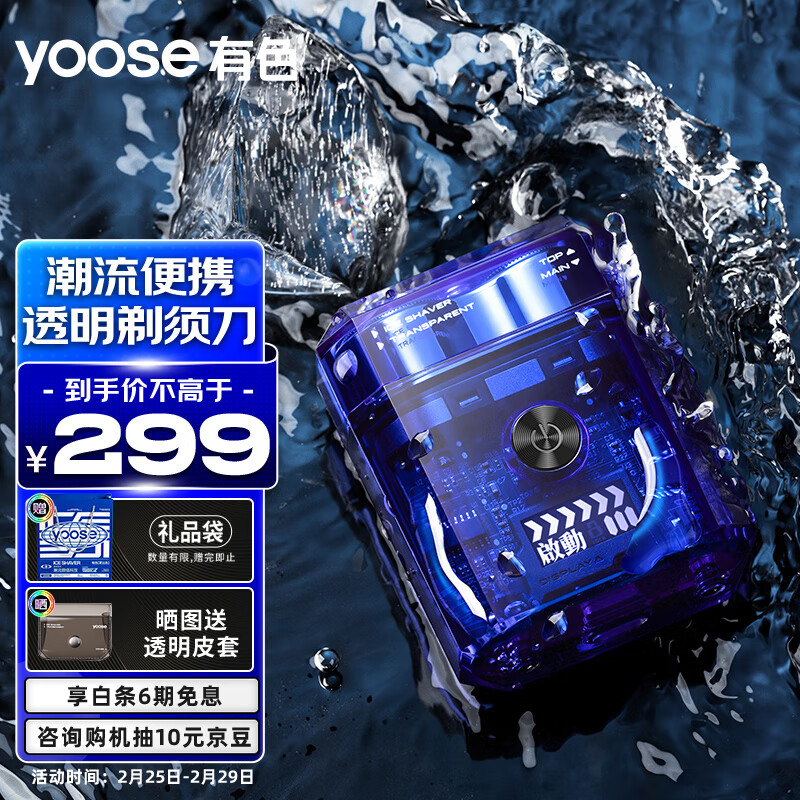 有色(yoose)电动剃须刀 迷你便携 透明机身 男士刮胡刀 送男友情人节新年礼物 胡须刀礼盒 ICE 透明蓝价格:399.00元!