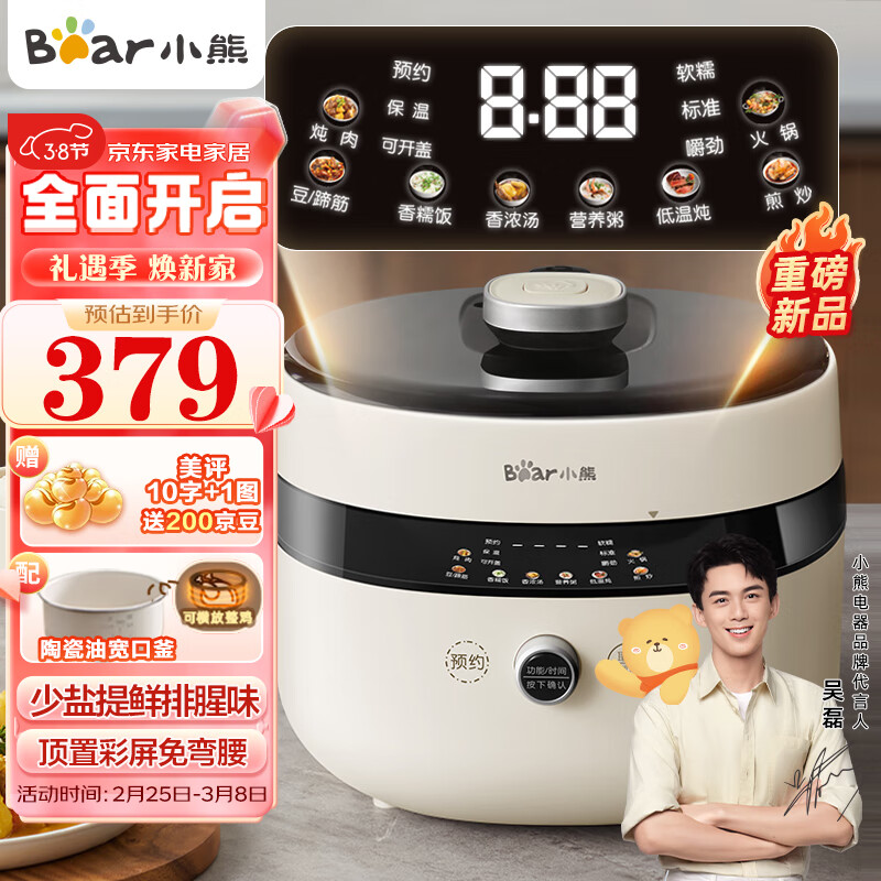 小熊(Bear)电锅 电高压锅 智能高压电饭锅 家用多功能打火锅煲汤自动控压少盐提鲜 YLB-D40Q1 4升大容量价格:379.00元!