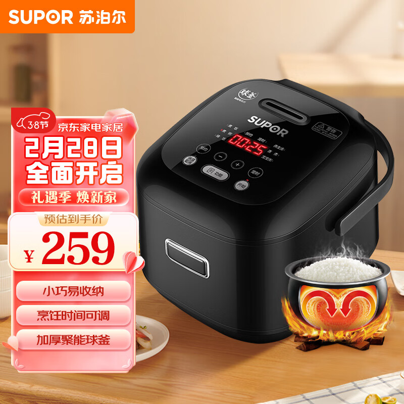 苏泊尔(SUPOR)电饭煲 2L 迷你智能电饭煲可预约定时 家用多功能球釜内胆电饭锅FXB20FC615-35价格:259.00元!