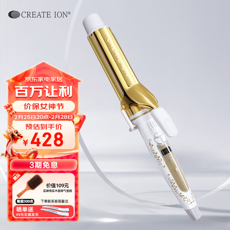 Create Ion创离子 宫村浩气电卷发棒 黄金系列第二代38mm大号大卷大波浪韩式 长发卷发神器不伤发价格:428.00元!