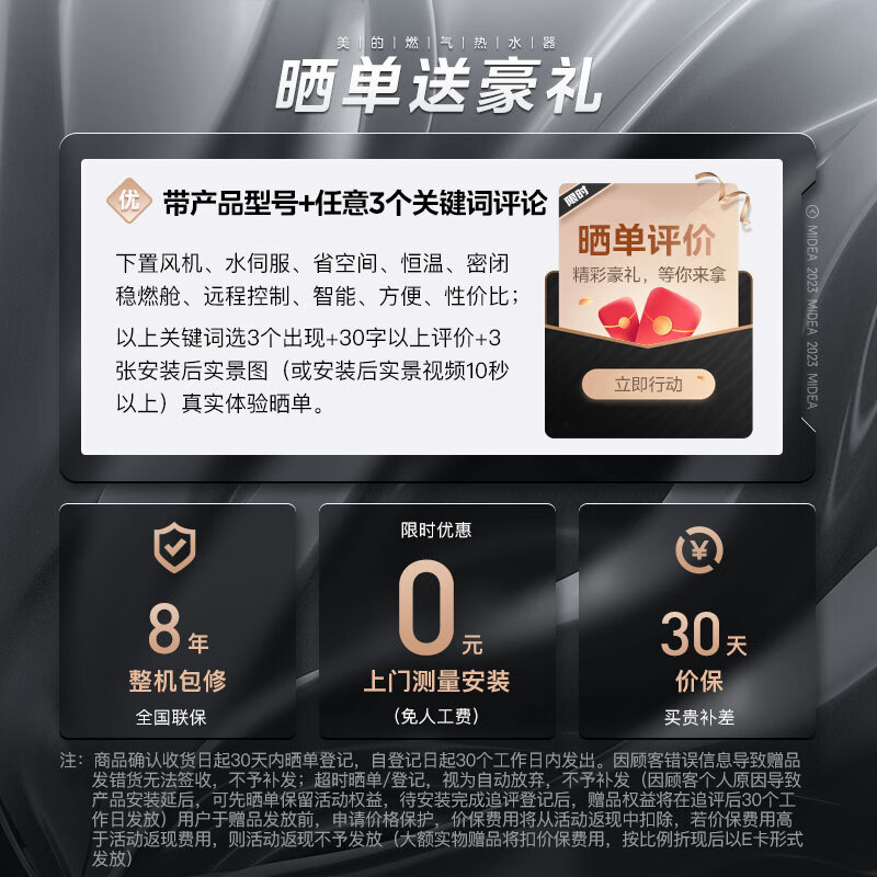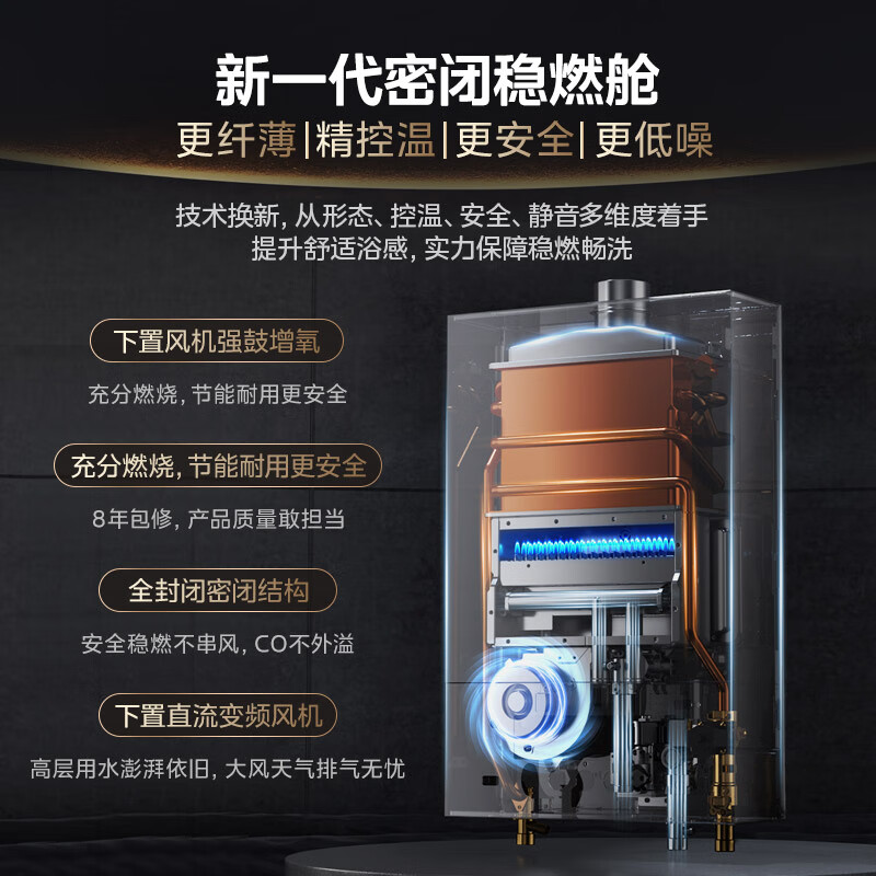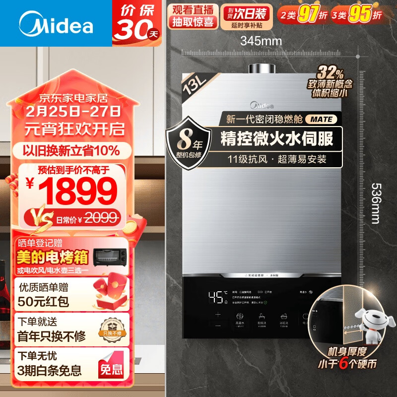 美的(Midea)13升燃气热水器 天然气 增压水伺服恒温 下置风机 高楼层抗风 新一代密闭稳燃舱 JSQ25-MATE致薄价格:1899.00元!