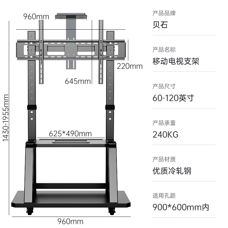 贝石 移动电视支架(60-120英寸)通用落地电视挂架电视推车 视频会议显示屏移动落地电视支架价格:888.00元!