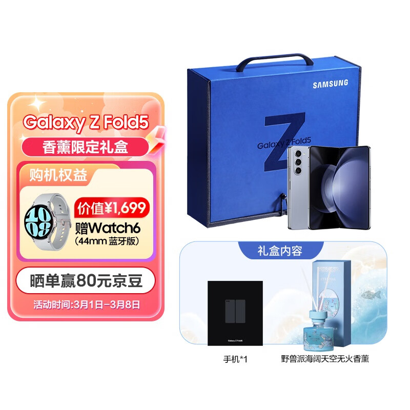 三星 SAMSUNG Galaxy Z Fold5 5G折叠手机 香薰限定礼盒 12GB+1TB 冰萃蓝价格:14999.00元!