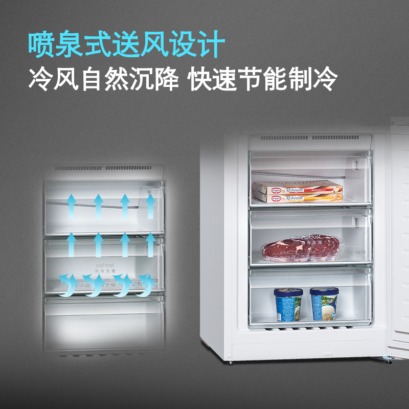 2、外形外观:外观颜色很喜欢,有质感制冷效果:制冷效果很好,目前没发现结冰的情况保鲜效果:中间一层放水果蔬菜,保鲜容量大小:一家3口271升空间足够用