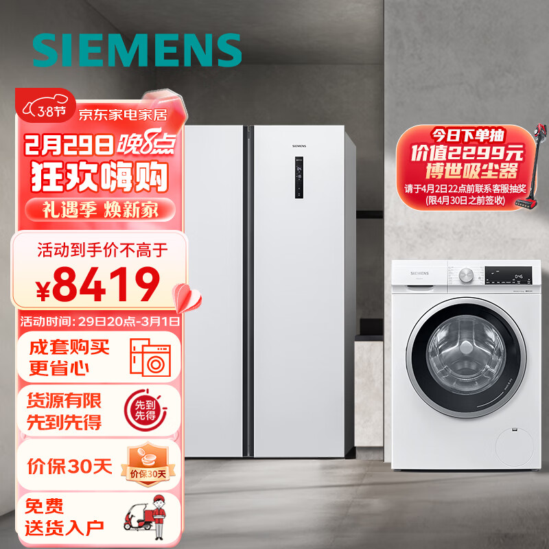 西门子(SIEMENS) 502升超薄简约+10KG洗烘一体 变频冰洗套装KA50NE20TI+WN52A1004W价格:8419.00元!