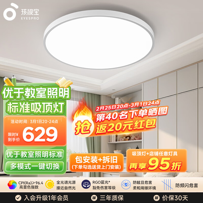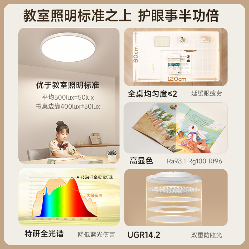 孩视宝护眼吸顶灯客厅灯卧室灯全光谱书房儿童房led灯具6-15m2AH33e-T价格:899.00元!