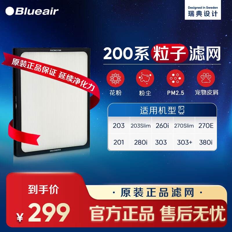 布鲁雅尔Blueair空气净化器过滤网滤芯 粒子型滤网适用270E/303/303+ 除颗粒物【配件】价格:299.00元!