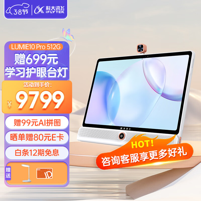 科大讯飞AI学习机LUMIE10 Pro (8+512GB) 星火认知模型 全龄段 大屏护眼 学生平板 英语学习 17英寸价格:9999.00元!