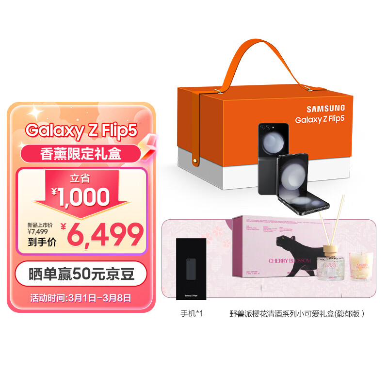 三星 SAMSUNG Galaxy Z Flip5 5G折叠手机 香薰限定礼盒 8GB+256GB 云影灰价格:6499.00元!