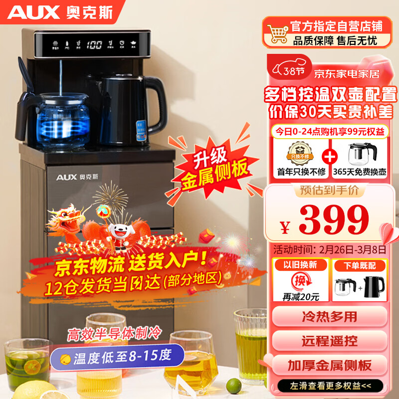 奥克斯(AUX)茶吧机 家用长效保温智能遥控立式款 多功能调温数显大屏下置水桶茶吧机 冷热款YCB-0.75-57价格:399.00元!