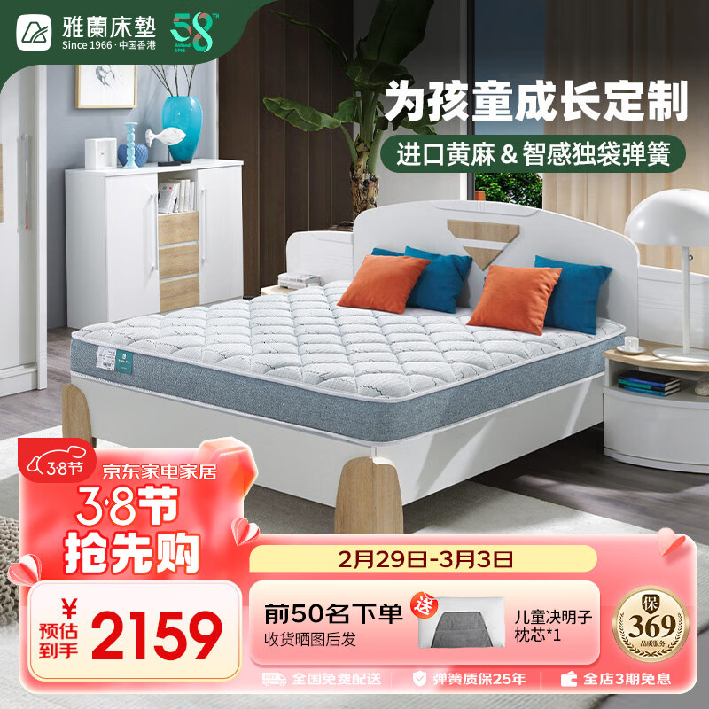 雅兰抑菌面料进口乳胶黄麻床垫 独袋弹簧er童床垫 蘭精灵 1.35*1.9米价格:3159.00元!