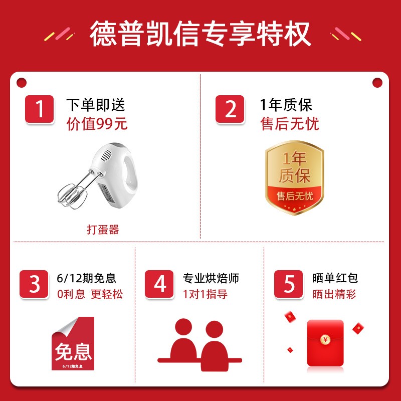 4、德普的烤箱用料扎实,物流送货方便迅速。整机的大屏幕操作很方便,菜谱还能联网更新很不错。烹饪完食物后机器的清洁也方便,送的赠品很实用