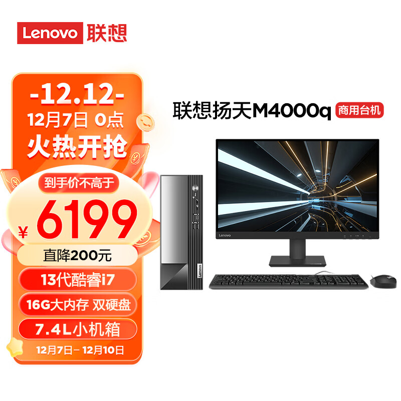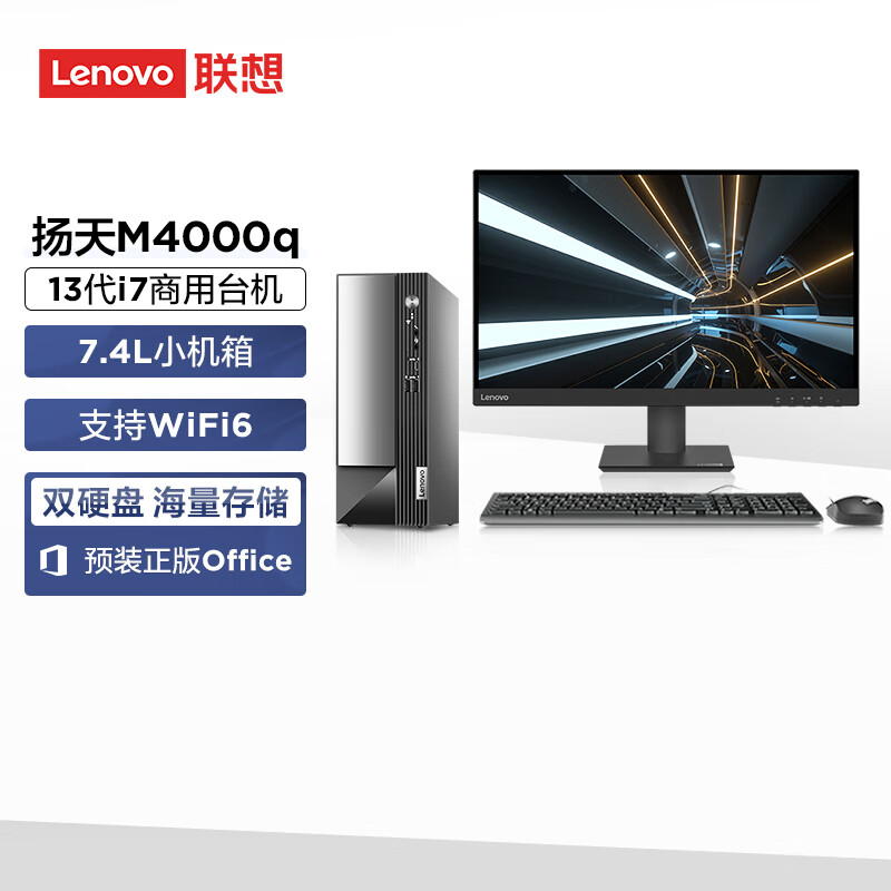 联想(Lenovo)扬天M4000q 英特尔酷睿i7 商用办公台式机电脑主机(13代i7-13700 16G 1T+512G Win11)27英寸价格:6199.00元!