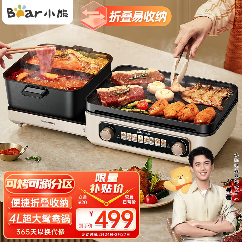 小熊(Bear)折叠多功能料理锅 电火锅 鸳鸯锅 火锅专用锅烤涮一体锅家用轻烟烤肉锅火锅烧烤DKL-E22W1价格:499.00元!