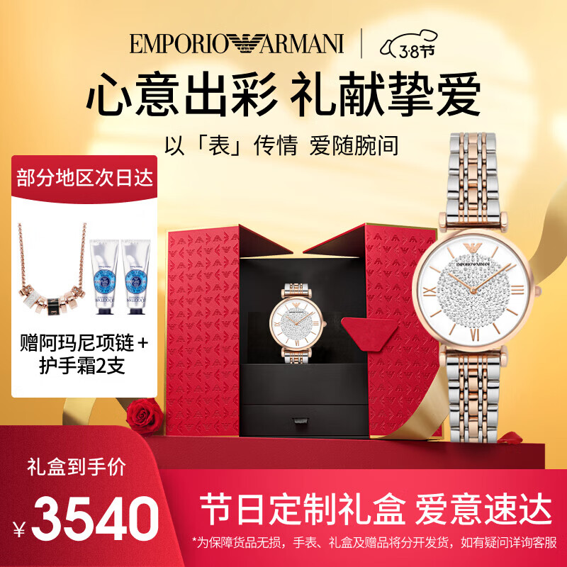 安普里奥·阿玛尼(Emporio Armani)手表女士 满天星AR1926时尚镶钻石英表送老婆生日礼物 女友礼盒价格:3740.00元!