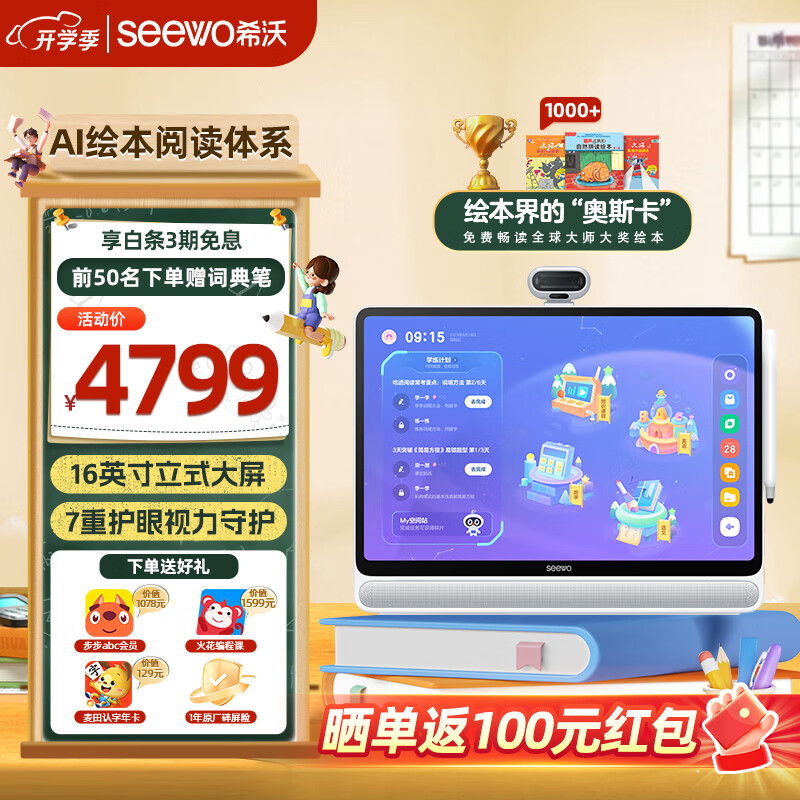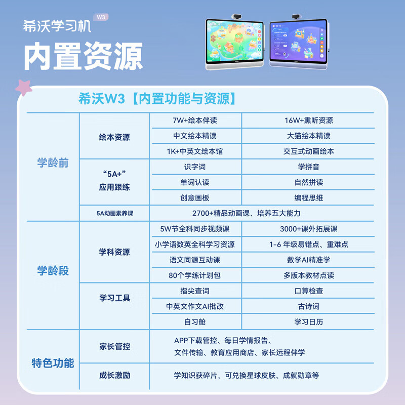 希沃学习机W3 类纸护眼大屏儿童学习平板 小学到高中AI学生平板英语早教机 8G+128G 皓月白价格:4799.00元!
