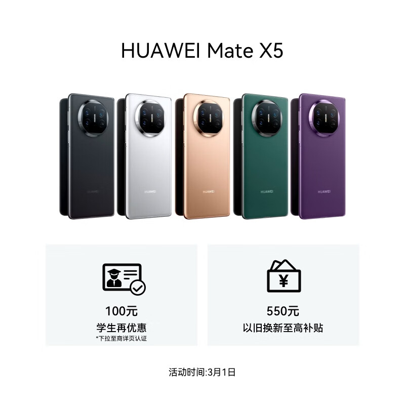 华为(HUAWEI) Mate X5 折叠屏手机 12GB+512GB 羽砂白价格:13999.00元!
