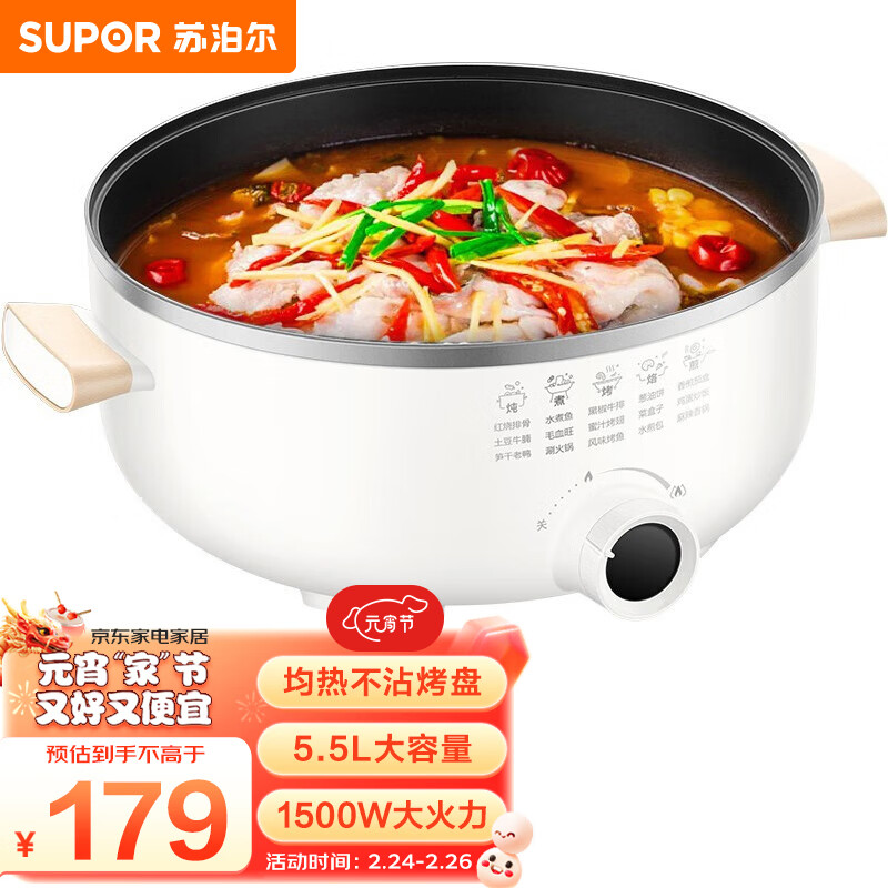 苏泊尔 SUPOR 多用途锅 电火锅家用 多功能电炒锅电煮锅不粘电饼铛煎烤机5.5L电热锅 JD30D818价格:179.00元!
