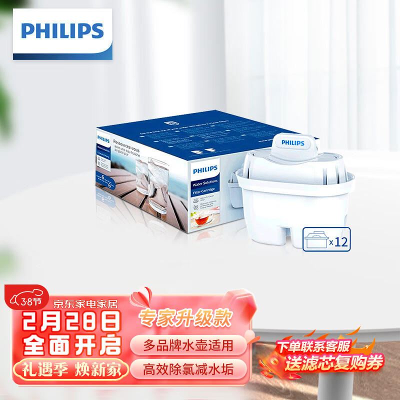 飞利浦(PHILIPS)家用净水壶滤芯 滤水壶净水器去除水垢专家版滤芯AWP210 12枚装价格:319.00元!