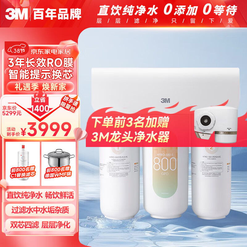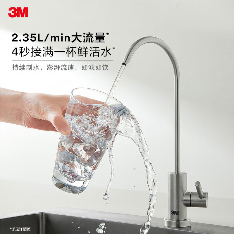 3M净水器家用净水机直饮RO反渗透厨下过滤器800G大通量2L/min家用纯水机HFRO-S823价格:4599.00元!