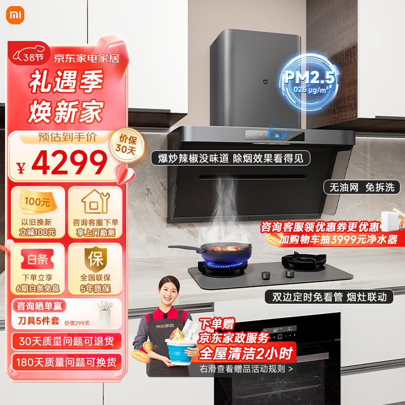 米家小米净烟机P1抽油烟机烟灶套装 智能净味吸油烟机 家用变频大吸力油烟机燃气灶MJ04CY(液化气)价格:4299.00元!