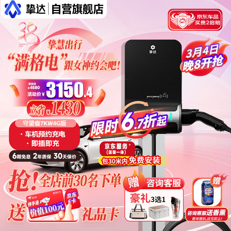 挚达7kw家用充电桩新能源电动汽车充电器枪比亚迪极氪吉利适配特斯拉小米(送装一体)30米内免费安装价格:4703.00元!