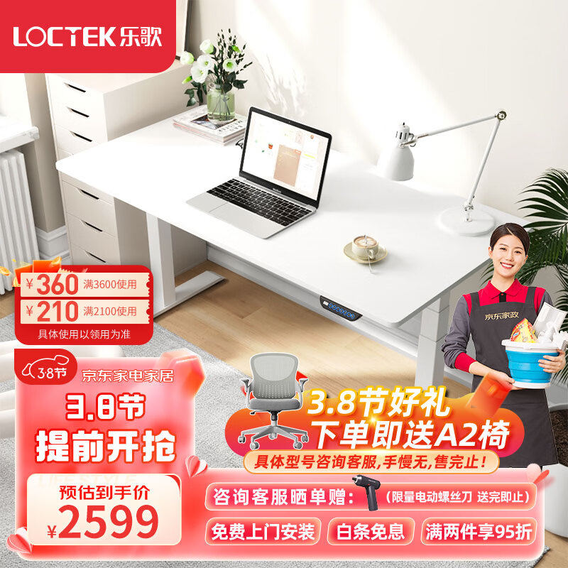 乐歌电动升降桌电脑桌站立办公学习桌写字书桌 E5-N/1.4m雅白色套装价格:2599.00元!