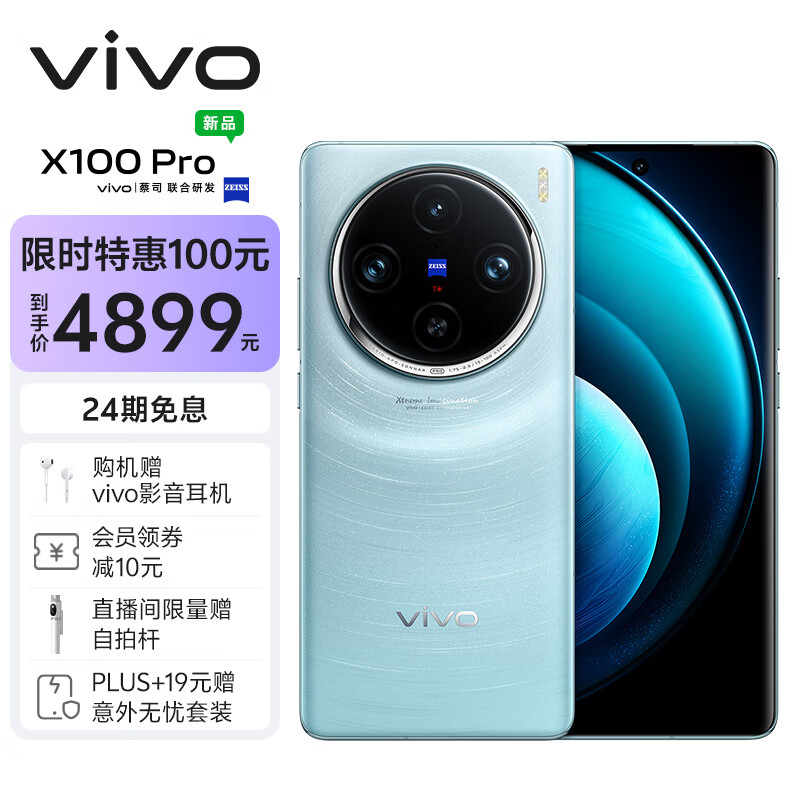 vivo X100 Pro 12GB+256GB 星迹蓝 蔡司APO超级长焦 蓝晶×天玑9300 5400mAh蓝海电池 自研芯片V3 手机价格:4999.00元!