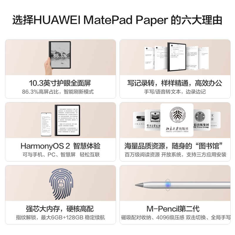 HUAWEI MatePad Paper 10.3英寸华为墨水屏平板电纸书阅读器 电子书电子笔记本 6G+128GB WIFI 锦白价格:3199.00元!