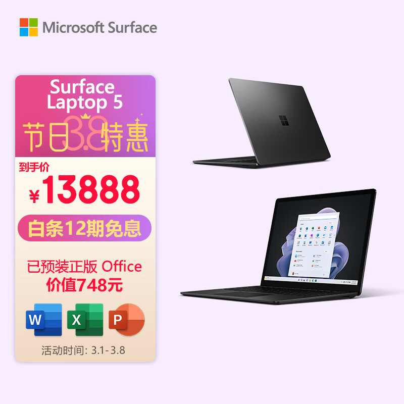微软Surface Laptop 5 轻薄办公笔记本电脑 i7 16G+512G 典雅黑 Evo认证 15英寸 2.2K高色域触控屏价格:13888.00元!