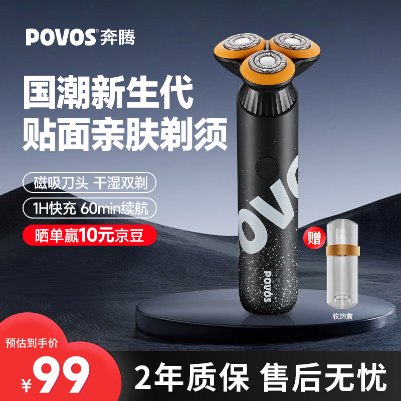 奔腾(POVOS)剃须刀电动刮胡刀胡须刀全身水洗快充PQ9700星空灰送男友送老公送男生生日纪念日礼物价格:103.00元!